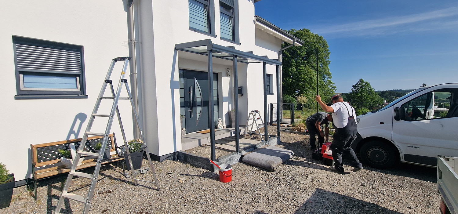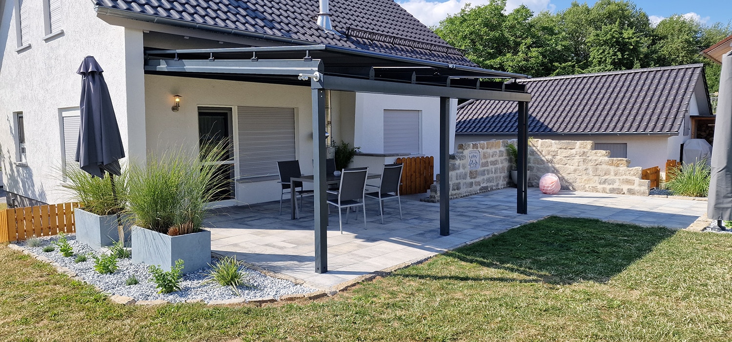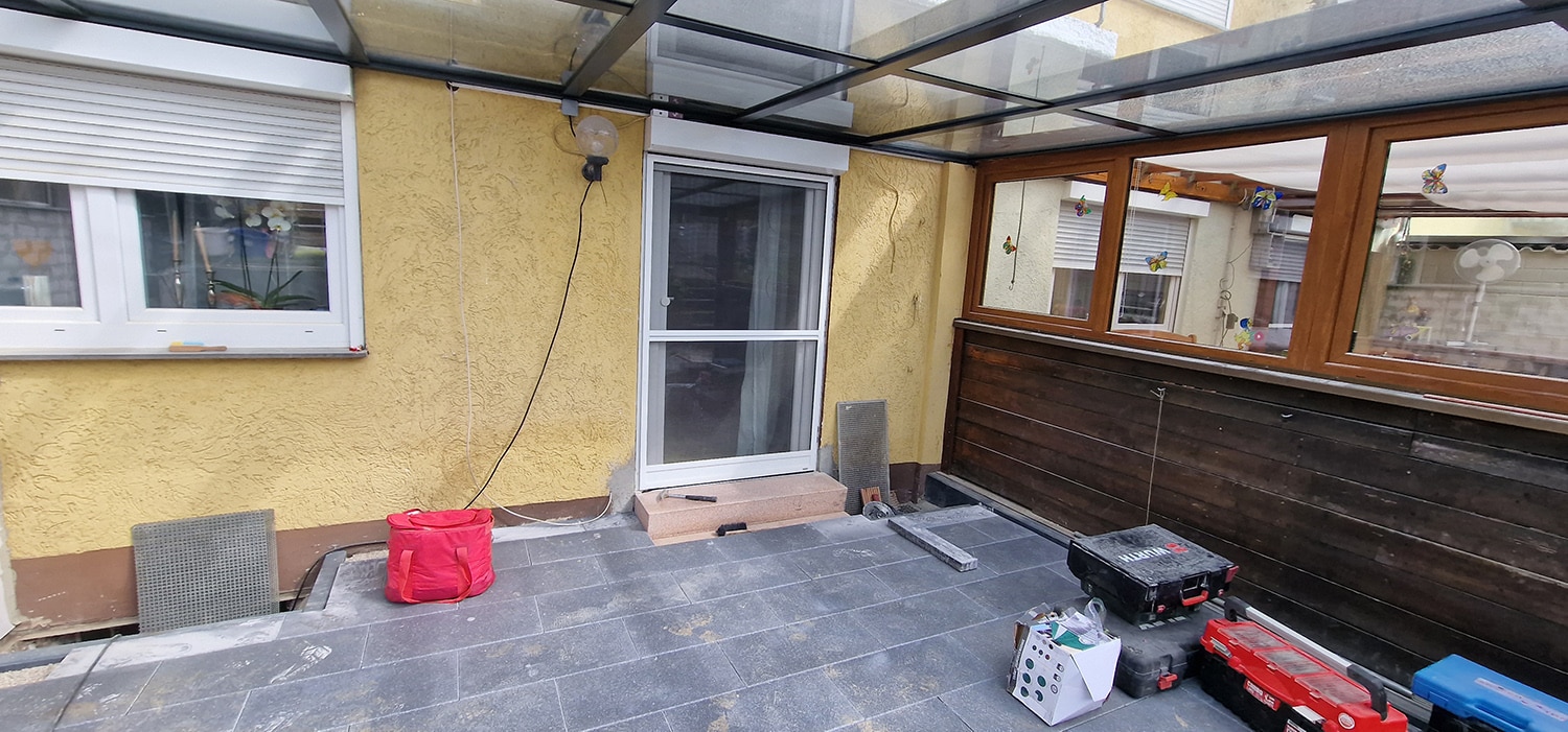 Auf Wunsch bauen wir eine neue speziell auf die Konstruktion Ihres Hauses zugeschnittene Terrasse, verlegen Fliesen, Balkonplatten oder passen die gesamte Umgebung an die Errichtung eines Wintergartens an.